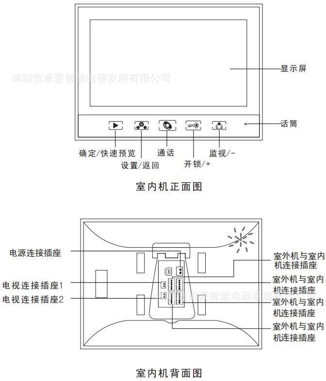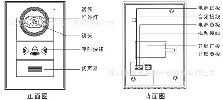 晚上也能辨别来访者。室内机电源可给室外机供电,方便节能。