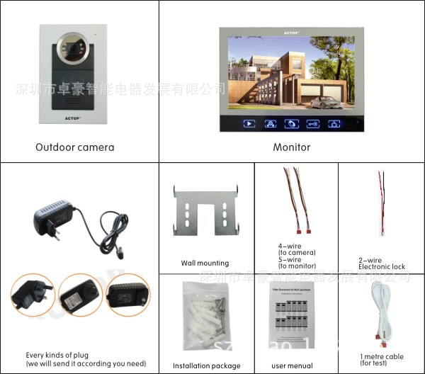 本产品是一个灵活的、适用的多功能楼宇有线可视门铃,抗干