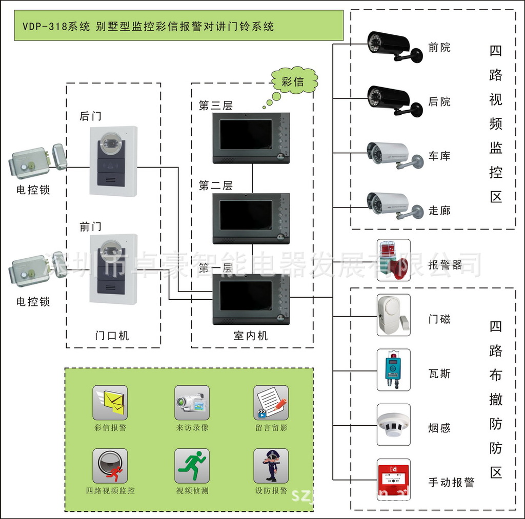 本产品是一个灵活的、适用的多功能楼宇有线可视门铃,抗干扰强,保密性高,造型新颖独特,实现人性化设计,本产品图像清晰,安装简单方便,令您的家居多了一道屏障,是现代家居的理想安防产品.