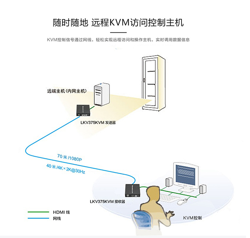 HDMI HDBaseT 单网线KVM延长器是一款采用HDBaseT技术的延长器,通过一条Cat6线缆可以延伸HDMI信号达70米。并且信号无压缩,传输速率快,画面清晰流畅,支持3D、24位色深4Kx2K、CEC及HDCP,支持4Kx2K@30Hz分辨率。产品广泛应用于指挥中心、数据控制中心、军事操控室、银行、政府、企业等需要进行控制或安全保密的场合。