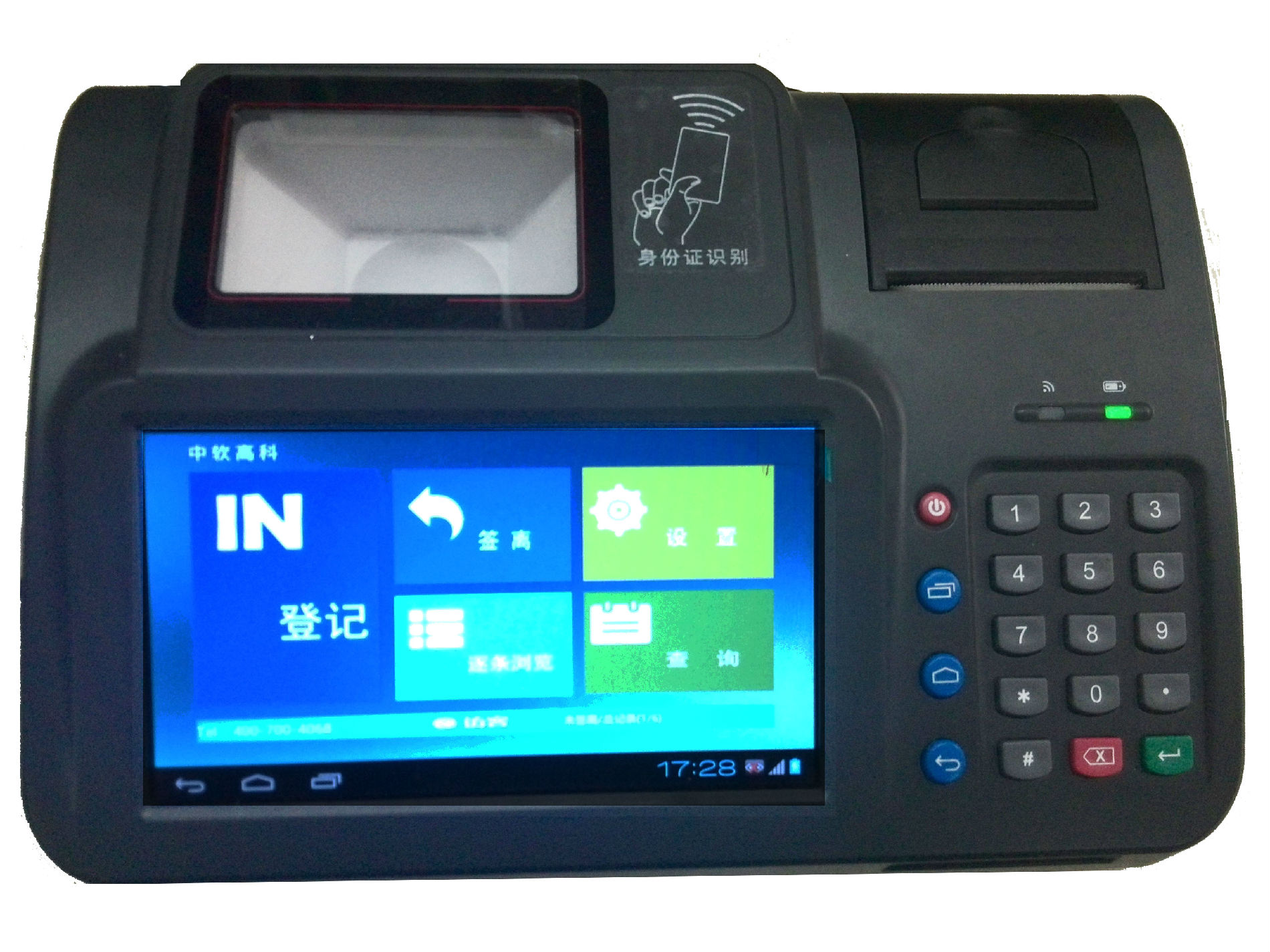 中软高科安卓智能访客机,是基于专为来访登记领域而特别定制的Android智能终端,集成了访客登记系统、打印机和平板电脑的所有功能,并充分利用条码技术,RFID技术,无线通讯技术,将安全性、简易性和技术性进行完美融合,从而使得平板电脑可以方便快捷地进行近距离无线通信连接、实现数据的实时交换与服务的功能。产品丰富的外设以及强大的硬件支持可为多个行业提供更加高效、便捷、安全的终端解决方案,安全、简便地完成门店收银、交通/活动检票之类的操作应用。
