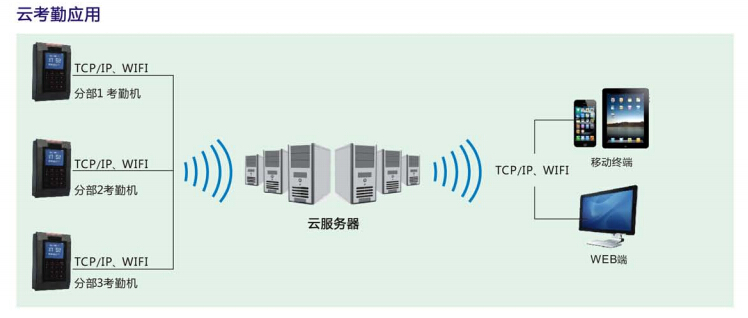●终端数量无限制,不仅适合单台应用,更可适合大型机器大型联网考勤应用;