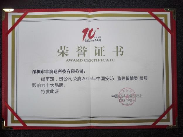 2016年1月7日全国安防界迎春团拜会在深圳世界之窗凯撒宫隆重举行,同期举行的还有第四届“中国安防最具影响力十大品牌”颁奖盛典。作为领先的PoE交换机设备及解决方案提供商,丰润达不负万众之所期望荣膺“2015中国安防最具影响力十大品牌” 。