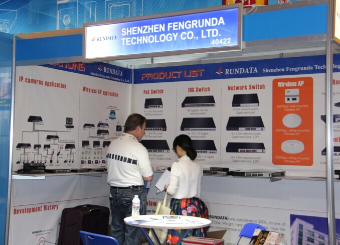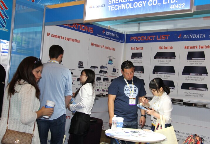 本次展示的PoE全系列产品,包括百兆PoE交换机,千兆PoE交换机,以及带管理功能、中英双语、Broadcom芯片等各种特色和明星PoE交换机。展示了视频监控PoE精工制造产品的魅力,传递出了丰润达经过近几年海外市场探索,坚持客户导向的设计理念。