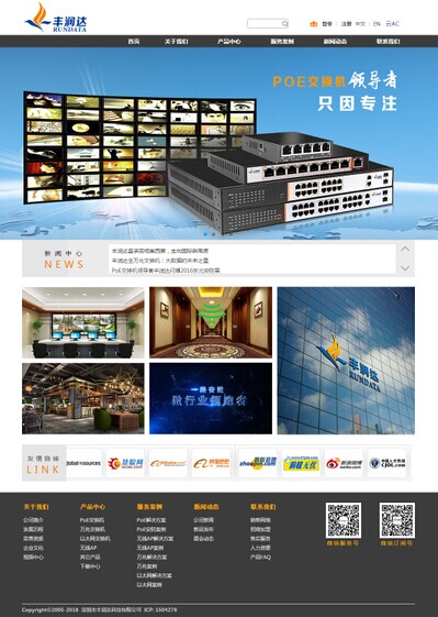 在产品介绍模块里,产品分类更加清晰,对产品型号及功能特点的介绍更为清楚明晰。并且丰富了“服务案例”栏目的内容,在原有基础上,增加了PoE解决方案、无线AP解决方案、网吧万兆解决方案等内容,同时系统响应速度也有了很大提升。
