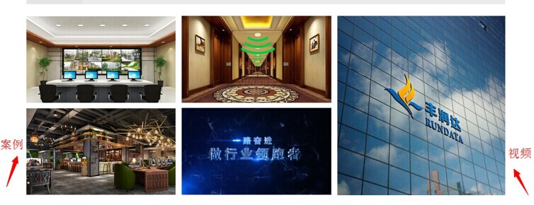 “新闻中心”下方的是“案例展示”和“视频”2大块。其左侧是4张代表图,分别对应PoE安防案例、无线AP案例、万兆案例、案例视频,点击图片即可进入到相关的界面进行浏览。右侧是1张醒目的带有公司logo的视频图片,点击该图片即可观看公司宣传视频,全面了解公司发展历程和发展现状。