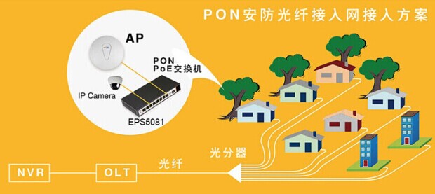 依托PON技术,丰润达提供业界新兴的具有PoE功能的ONU产品EPS5081,相比目前主流的ONU设备多了PoE网线供电功能,支持af/at标准,就算监控摄像头众多,也能免去繁琐的电源布线,简化网络工程,降低建网成本。