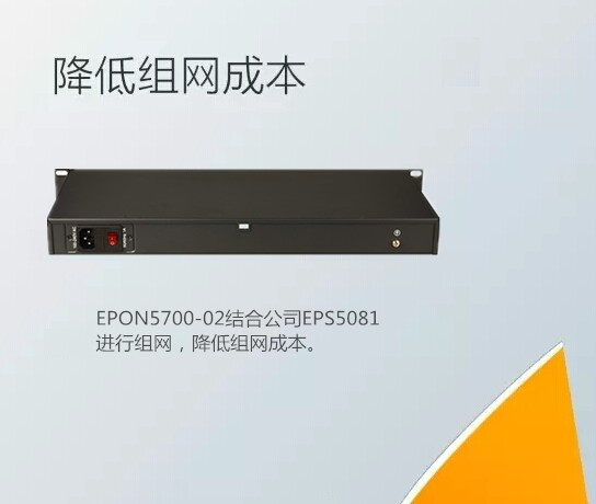 EPON5700-02适合市场需求,单台支持2个EPON系统,最多可接入128个ONU,灵活的设计支持多种不同城域网接口类型组合,根据网络情况选择光口或电口。