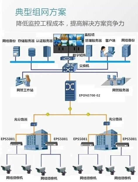 借助以太网这个载体,采用点到多点结构、无源光纤传输方式,提供1.25Gbit/s上下行对称速率,高速宽带,实现最大20km的接入能力,充分满足网络高清监控对带宽和距离需求。