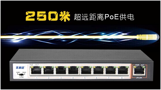 针对安防环境和需求的多种多样,丰润达设计出250米供电传输的PoE交换机,如PS504E、PS5081E等。使用8芯供电技术,网线上损耗更小,供电更稳定,电力驱动距离更远。在一些网络摄像机与录像机距离超过200米的工程中,这种设备是更好的选择,解决前端设备供电问题的同时,能达到更远距离的传输。