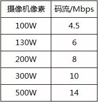 常见的摄像头像素规格及推荐的码流数值如下表: