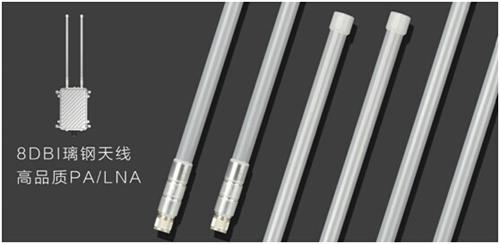 外置4根玻璃钢天线(2根2.4GHz 8dBi,2根 5.8G 8dBi),美观大气,抗老化,抗腐蚀,8dBi全向天线,360°无死角,覆盖范围广。高品质PA/LNA ,让WiFi信号如钢铁般坚不可摧。