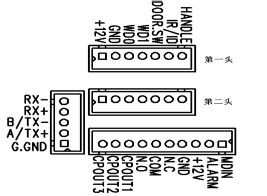 第7脚 | 黄色 | HANDLE 手动开门信号输入,要求输入信号为干接点 | 多接出门按钮 |