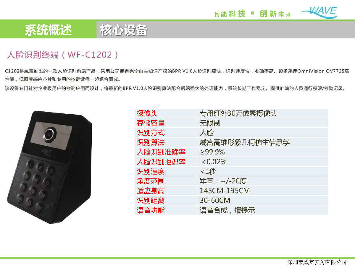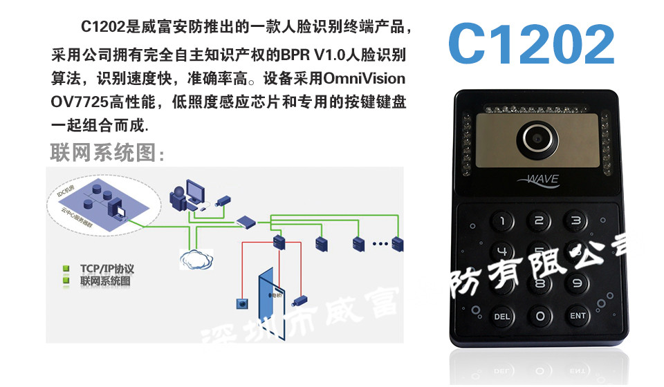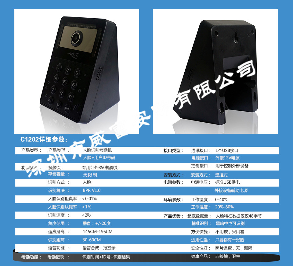 威富安防人脸识别考勤机 智能办公无限存储 精准快捷 C1202