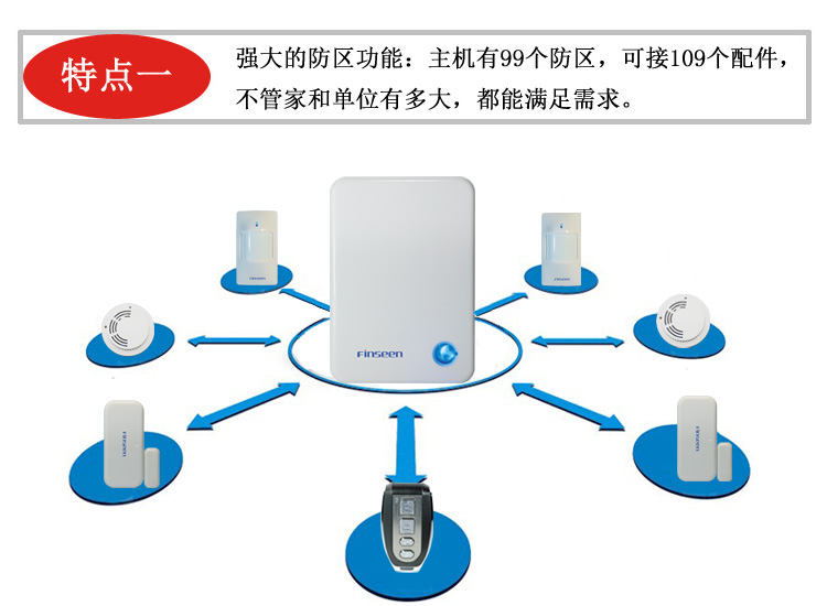 3. 可配99个无线防区,可接109个配件