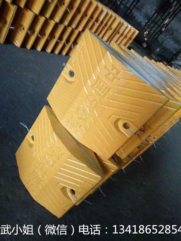 4、端节上有特殊纹理,有效避免滑动,表面专门设计的凹槽条纹可确保雨天及雪天的防滑功能;橡胶减速垄采用凸凹型自然吻合接口,使安装更方便省力,花纹则采用人字花,更利于排水;