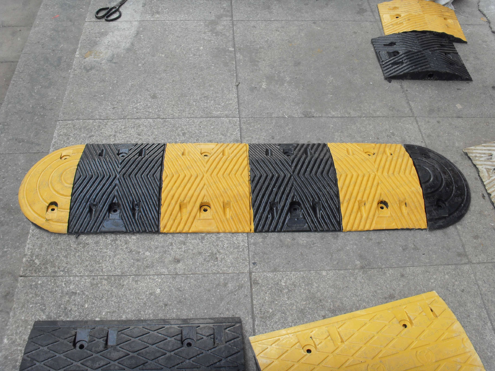 4.黑黄相间,特别醒目;每块端节上可安装高亮度的反光珠,晚上反射光线,使司机可以看清减速坡的位置;