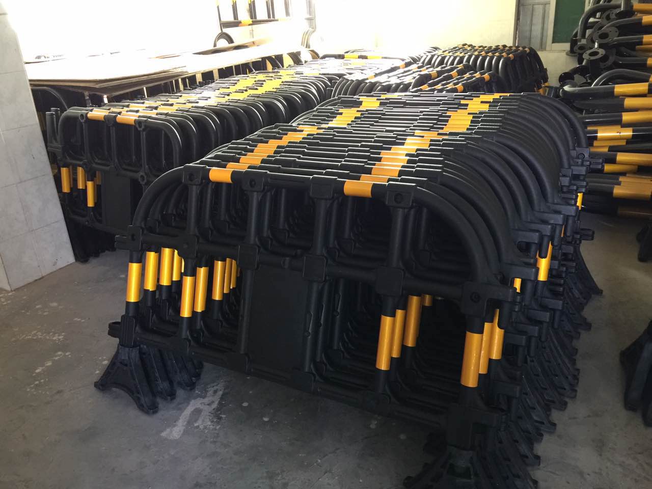 高强度PVC管折弯连接件组合而成;脚部可360度旋转;护栏与护栏之间可自由连接摆放;隔离效果好,方便易用,警示效果佳;