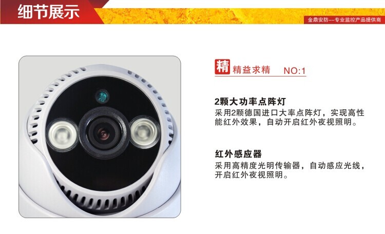 金鼎高清红外半球监控摄像头监控摄像机安防器探头1080线