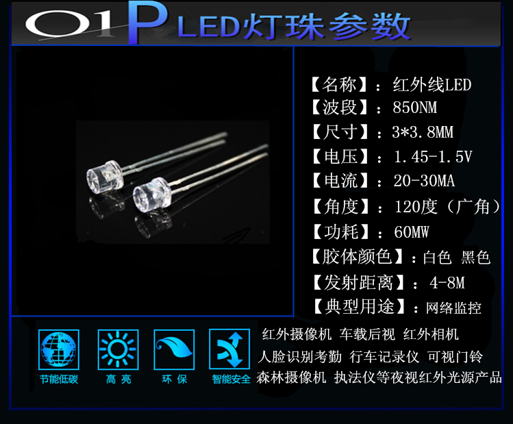 LED红外灯 850/940红外线发射管 交通信号灯发光二极管 06030805 3014 3258 5050 2835 5730等各种颜色LED发光二极管 LED食人鱼 红外线发射与接收对管等系列产品