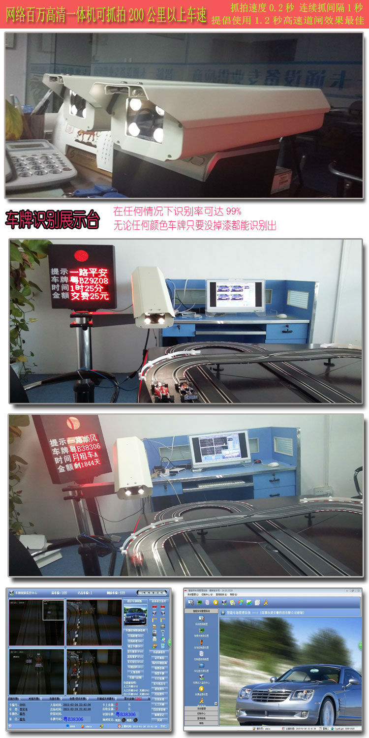 由于采用高速算法和高速的软件平台,适应时速200公里/小时的车速,使得车辆在超高速(闯关冲卡车辆)行驶或超低速行驶时都能准确识别车牌号码抓拍图片,避免了因高速车辆通行路口无法捕获的现象发生。