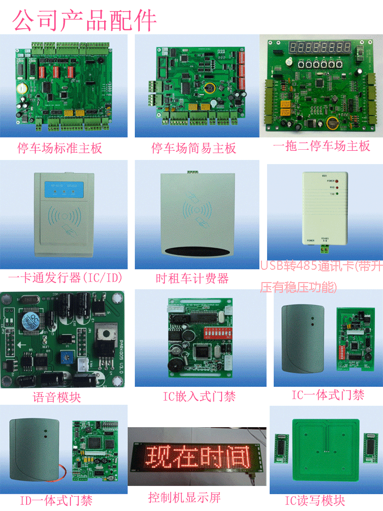 停车场系统、网络百万高清车牌识别系统、蓝牙远距离系统、ID中距离系统、挡车器、可视楼宇对讲、门禁系统、监控系统