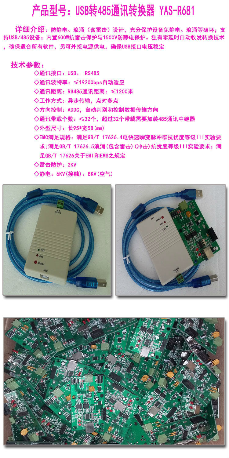 智能一卡通停车场管理设备USB转485通讯转换器 带防雷、静电稳压功能