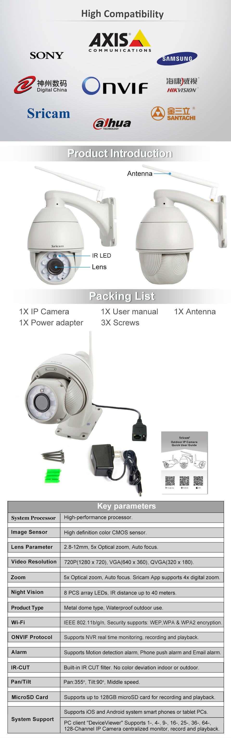 施瑞安品牌百万高清五倍变焦网络摄像机SP008