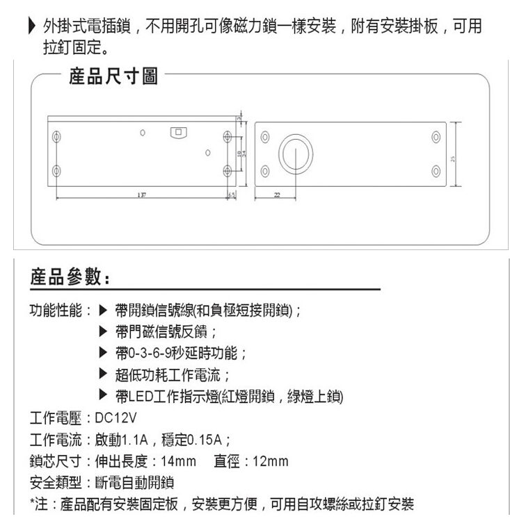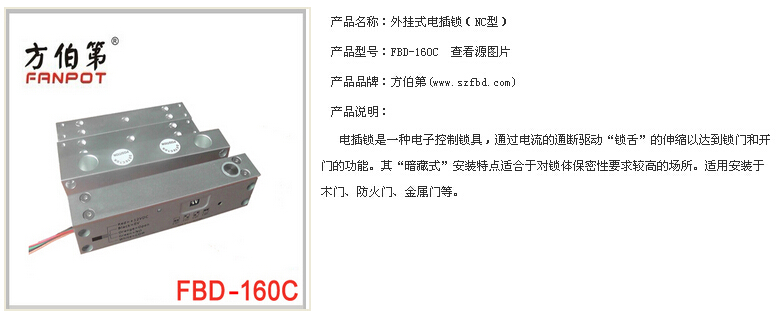 深圳市方伯第外挂式电插锁(NC型)五线门磁型带延时调节
