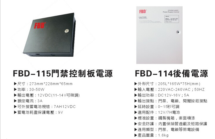 深圳市方伯第科技门禁专用电源3A/5A可选后备蓄电池