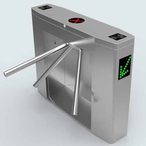 ●三棍闸机能够实现公共通道简易的劝阻级访问控制。设备的机械部分包含一个紧急控制装置,在断电时,水平位置的闸杆会自动落杆,保证通道通畅;当通电时,三闸杆需手动复位。具备多种不同的配置,可适用于所有建筑环境,并可解决行人出入口通道所有的控制问题。