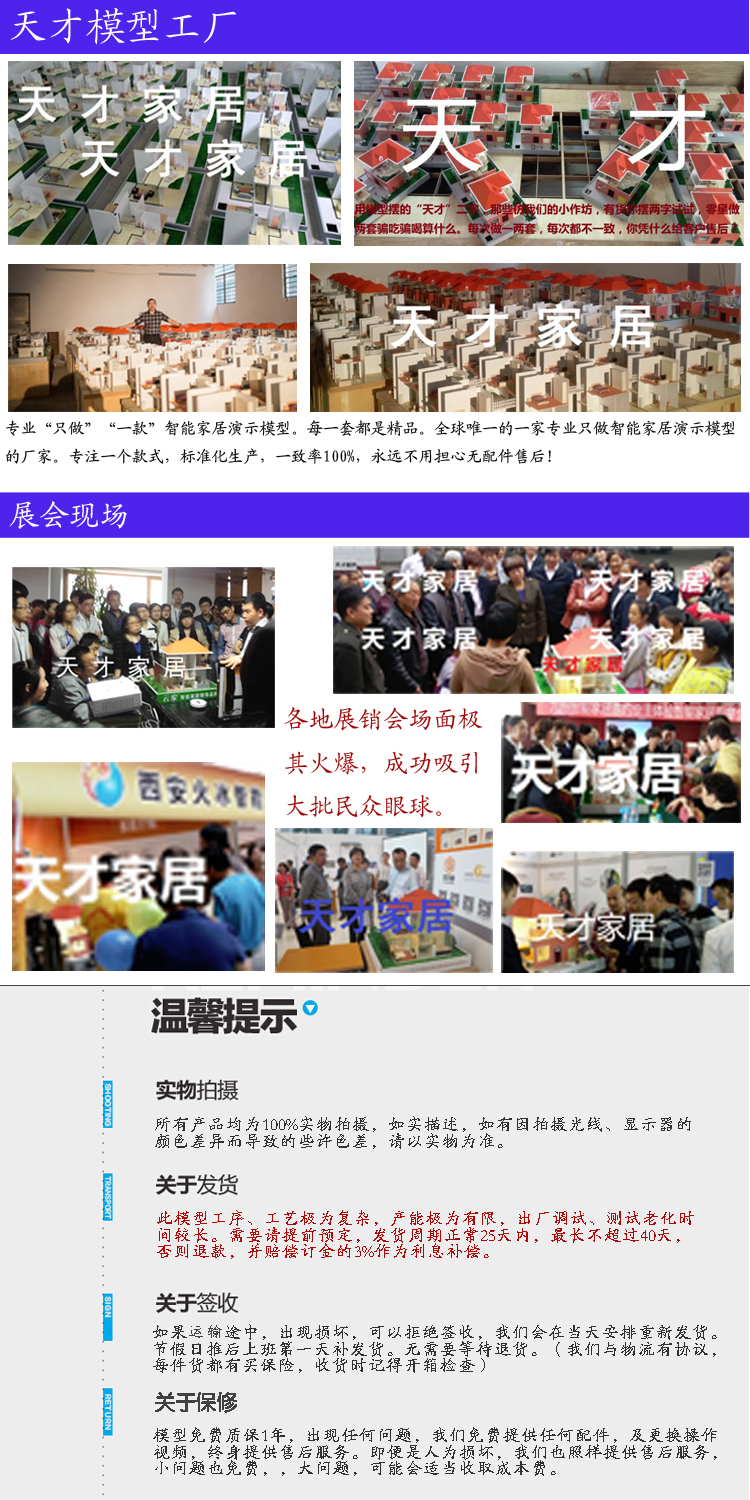我们是目前市场上唯一 一家“专业”标准化生产智能家居演示模型的企业,主要出口,国内少量销售。