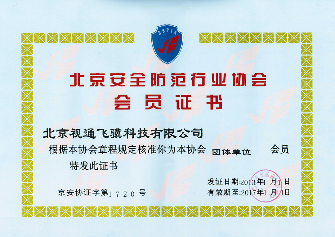 北京安防协会会员证书