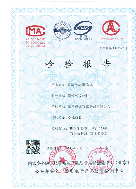 高清半球摄像机检测报告