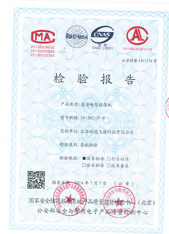 高清枪型摄像机检测报告