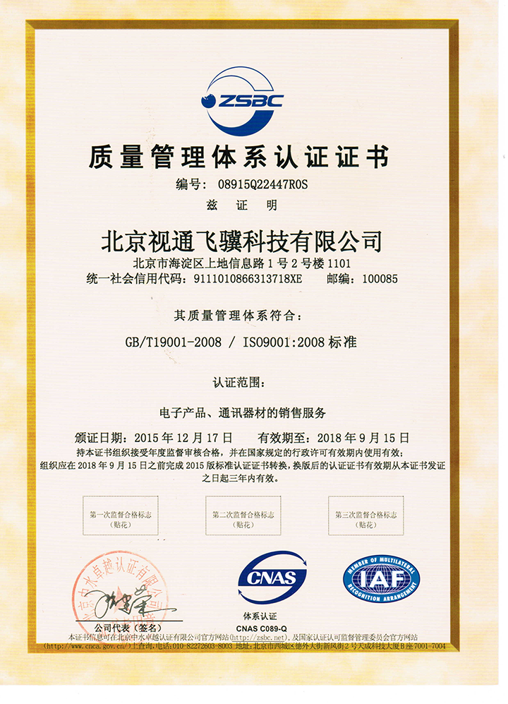 质量管理体系认证证书