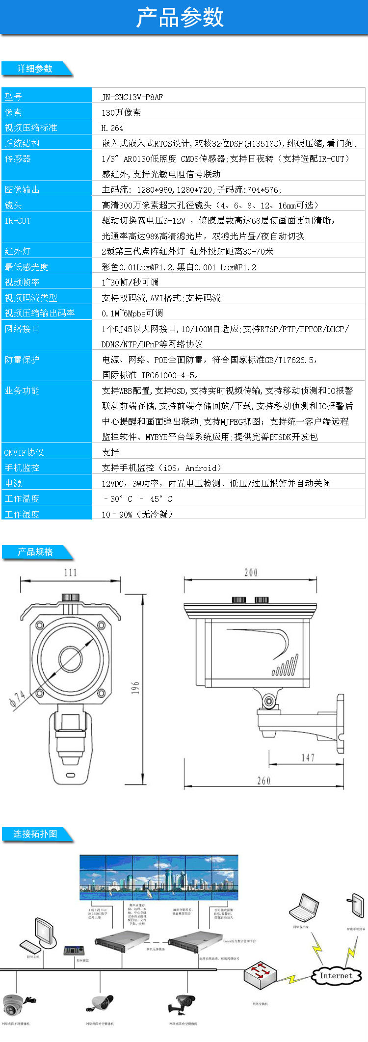 供应 Canen加恩 130万网络高清点阵枪型摄像机