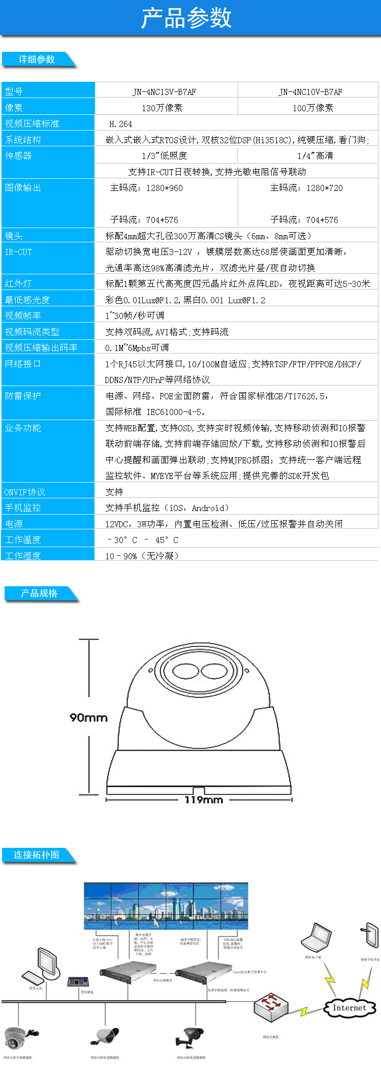 供应 130、100万网络高清点阵半球摄像机 Canen加恩