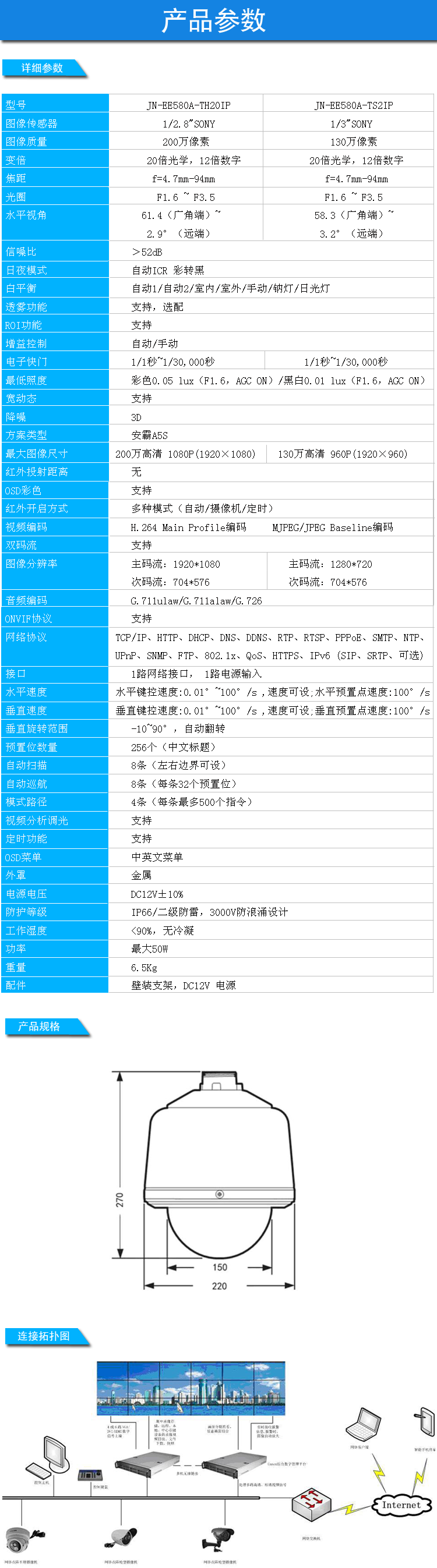 + 网络智能球型摄像机