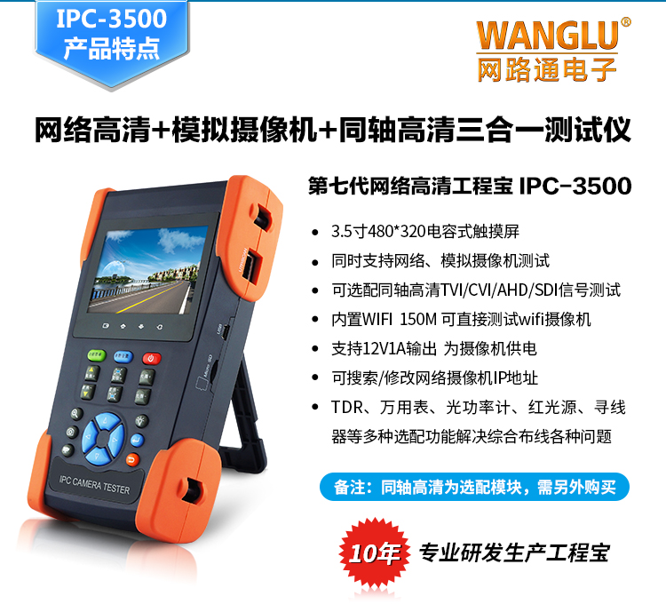 网路通IPC-3500工程宝 网络模拟二合一 可选配同轴高清 一键测试