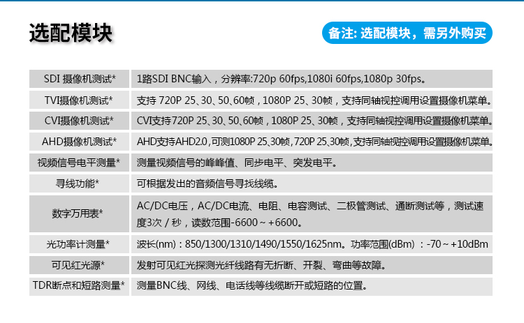 2.TDR和电平测试 不能和 SDI/AHD/CVI/TVI搭配组合。