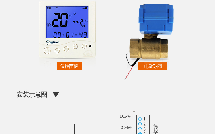 温控采暖阀:温控采暖阀:由时间通断阀和室温控制器两部分组成;