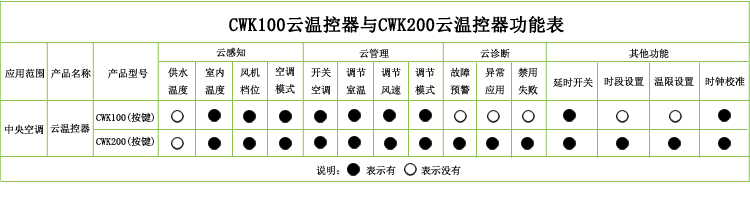 wifi温控器CWK100的全部功能(移动APP管理+智能控温+云感知+云管理+云升级+地理围栏+多住宅管理)+云诊断+温限管理+时段设置等功能=互联网温控器CWK200。