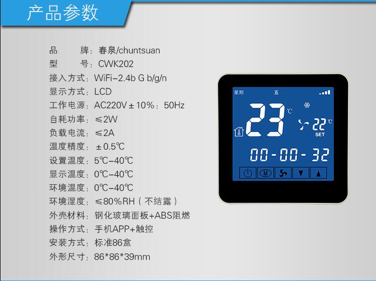 云温控器CWK202高清触屏面板,中央空调智能控温更便捷