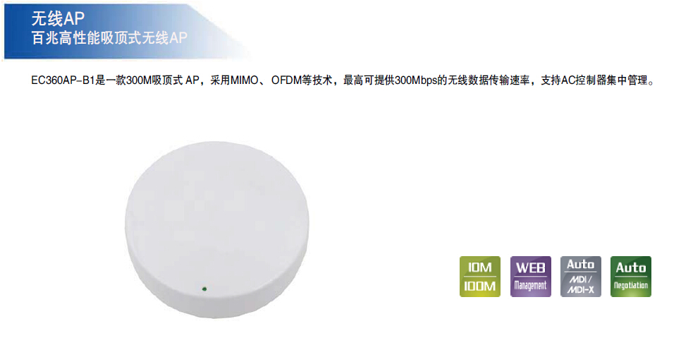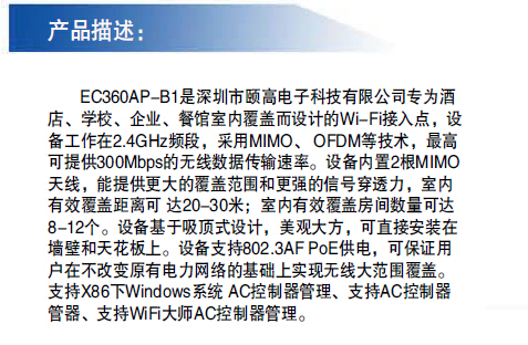 颐高EC360AP-B1 高性能吸顶式无线AP POE供电