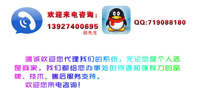 竭诚欢迎您代理我们的系统,无论您是个人还是商家,我们都给您办事处的待遇和强有力的品牌、技术、售后服务支持。