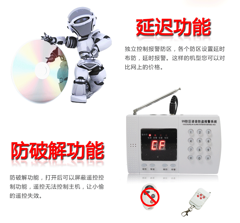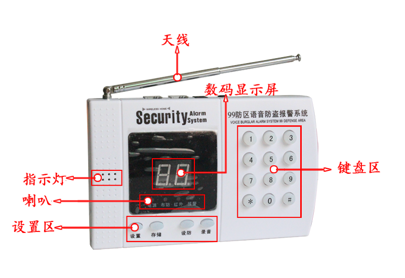●普通防区 红外防区 智能防区 紧急防区全程语音提示