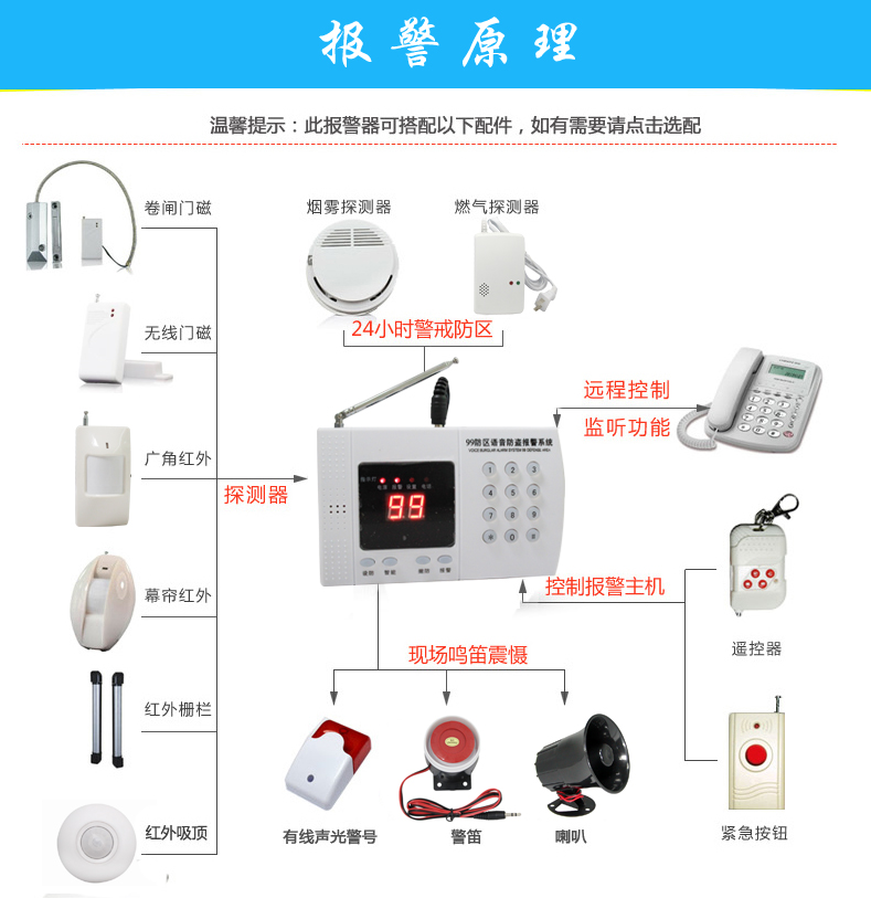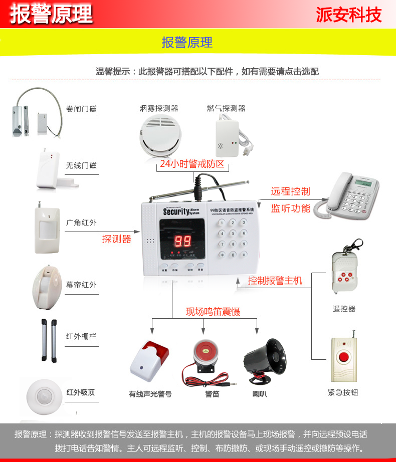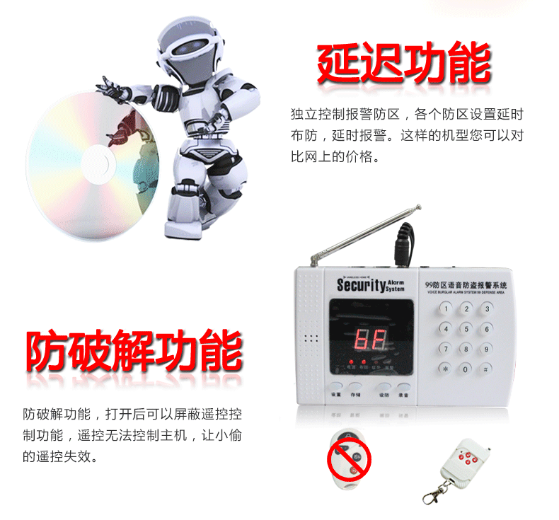 ●普通防区 红外防区 智能防区 紧急防区全程语音提示