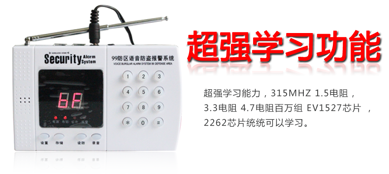 ●异地远程监听功能,远程电话布防撤防,可学习99个遥控器及99个探测器