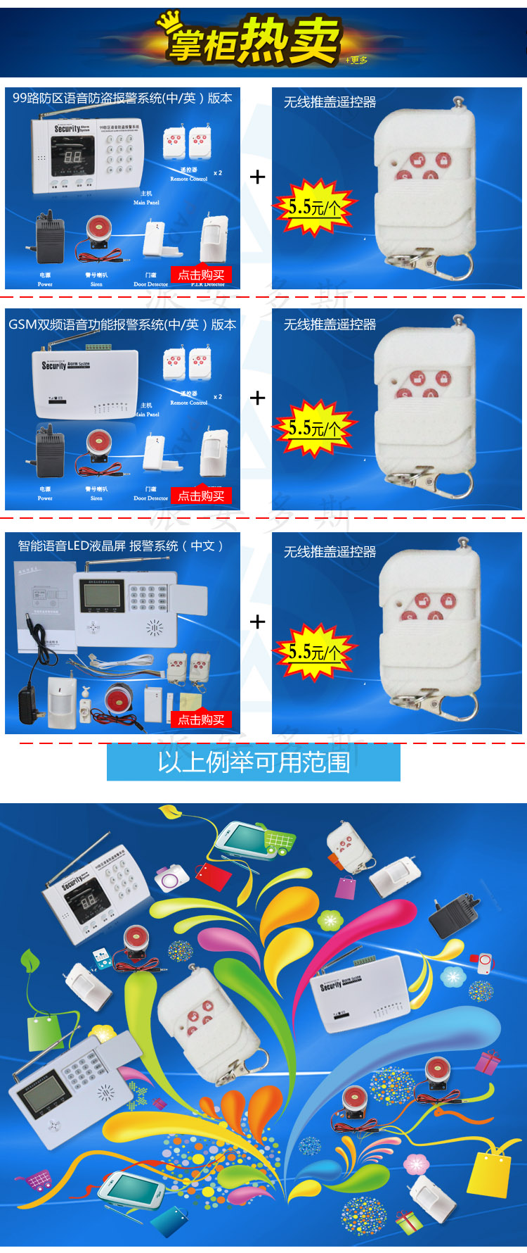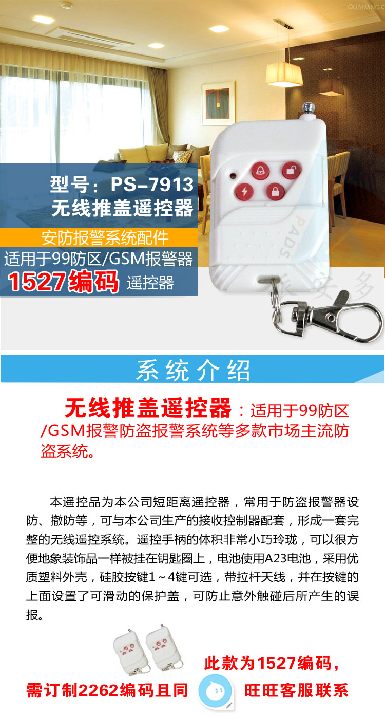 无线遥控器,四键遥控器,报警遥控器